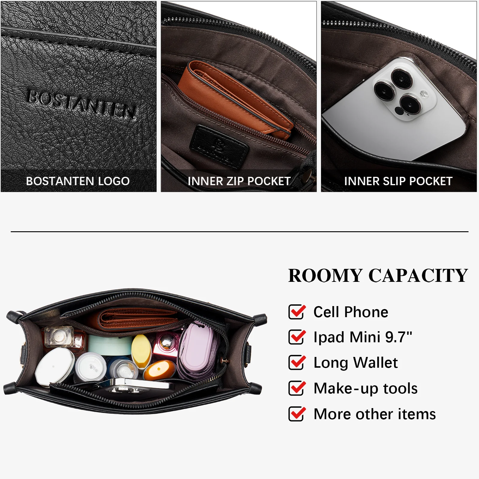 This corssbody bag is made of premium vegan leather with gold tone hardware.Upgrade Cross body: This hobo crossbody bag is comming with a small wallet & Newly guitar strap.Structure: 1 main compartment + 1 front magnetic snap pocket + 1 back slip pocket. The inner structure includes 1 zip pocket + 1 slip pocket.
