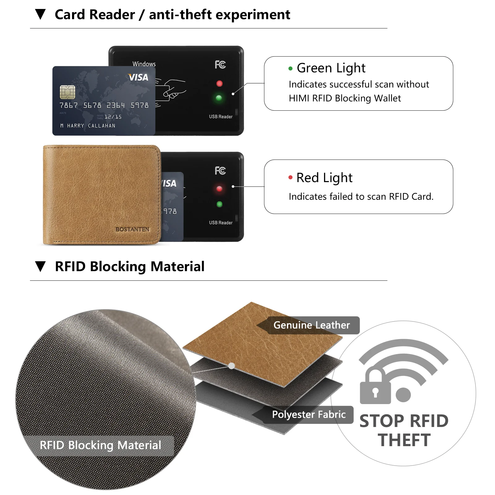 - RFID Blocking Security: The wallets are equipped with advanced RFID SECURE Technology, a unique metal composite, Protect your information from hackers by using a BOSTANTEN RFID blocking wallet.