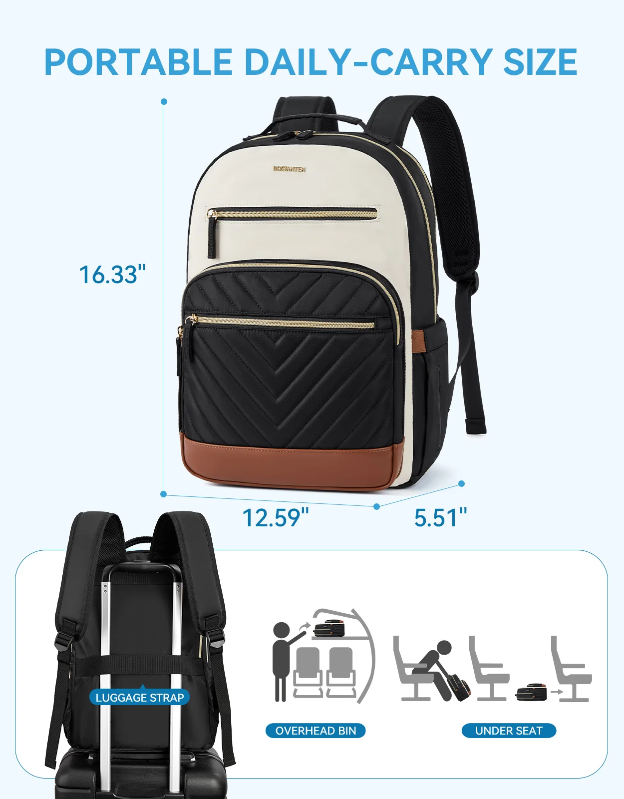 - HIGH QUALITY MATERIAL: Size (L) 12.59 x (W) 5.51 x (H) 16.33 inches, weight 1.87 pounds. Womens laptop backpack is made of good environment-friendly and scratch-resistant nylon, ensures long lasting usage. Exquisite gold-plated zippers and fashion stitch texture make this travel backpack purse more stylish and unique.
