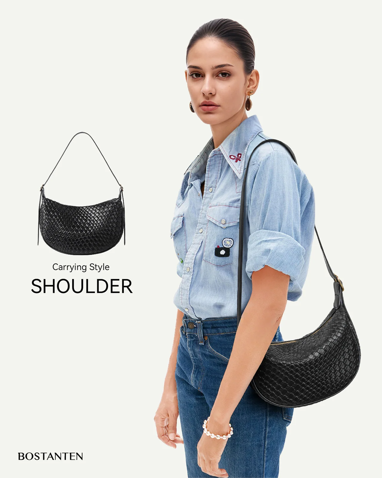 -70%KWELI Woven Leather Half Moon Shoulder Bag—