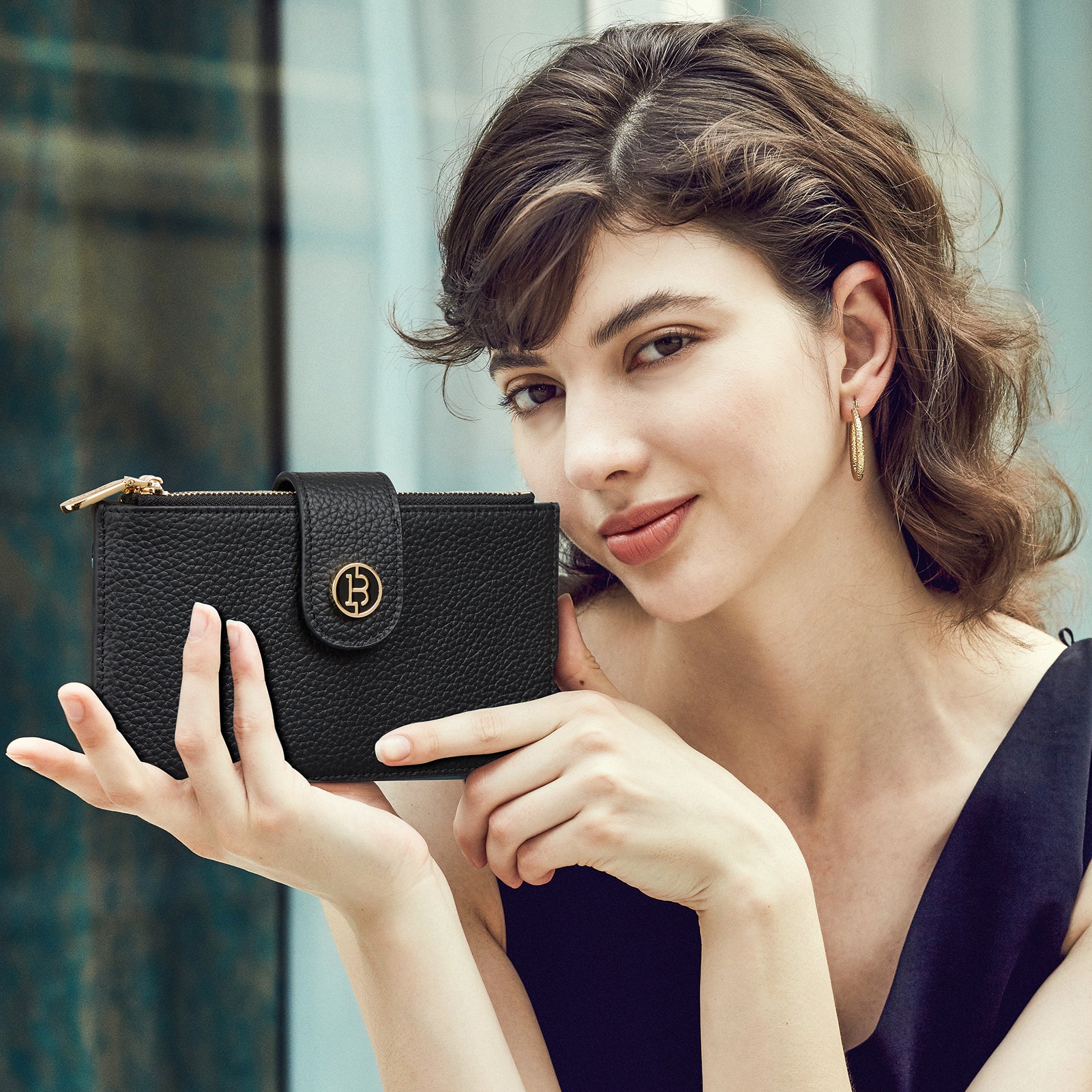 - Genuine Leather - Made of high quality cowhide genuine leather. Longer time we use, nicer it becomes. The rfid women wallet comes with two buttons for adjusting the size to accommodate more items. There is a logo "B" design on the button sleeve. When your wallets is fully stuffed, you can use the outer button to adjust your leather wallet. When it is empty, you may use the inner button to adjust it to its normal size.